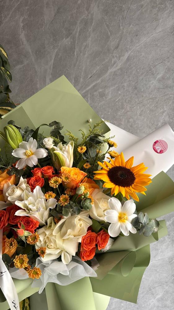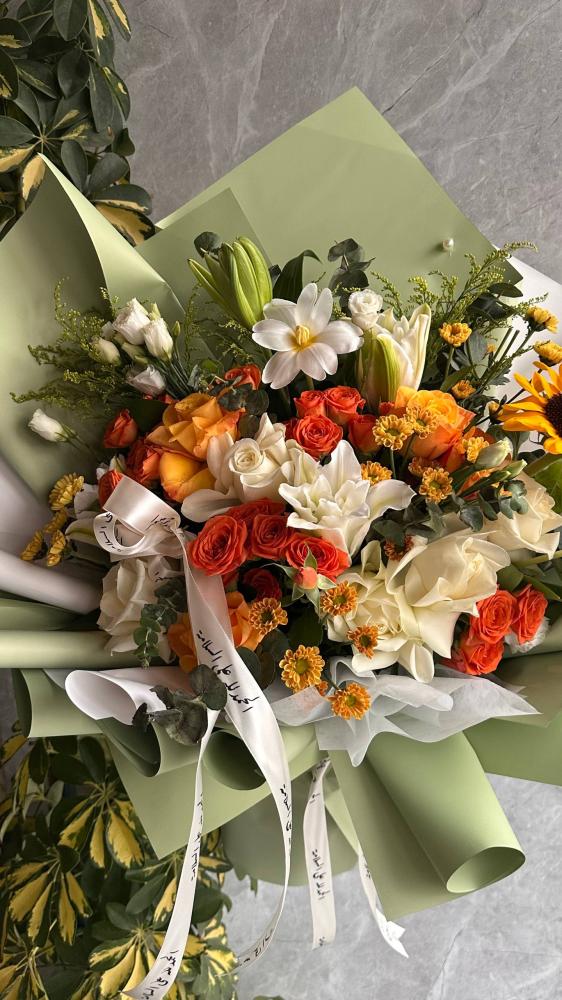 ابدأ يومك بإشراقة من الألوان المبهجة مع باقة الشروق الفاخرة 🌼، تنسيق أنيق يجمع بين الورود البيضاء، البرتقالية، والصفراء في مزيج يرمز للتفاؤل والحب. مثالية للإهداء في جميع المناسبات مع خدمة توصيل ورد جدة السريعة. تصميم حصري يضفي لمسة من السعادة على يوم من تحب. 🌿 اطلبها الآن واجعل لحظتك أجمل!